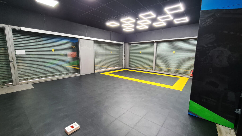 Per prendersi cura dell’auto serve un ambiente di qualità. Grazie al nostro pavimento, il negozio di cosmetici per auto ha acquisito un aspetto moderno e professionale. Il cliente ha scelto le piastrelle Fortelock Invisible per questo locale e una combinazione di colori evidenziando con il colore giallo a contrasto il posto auto.