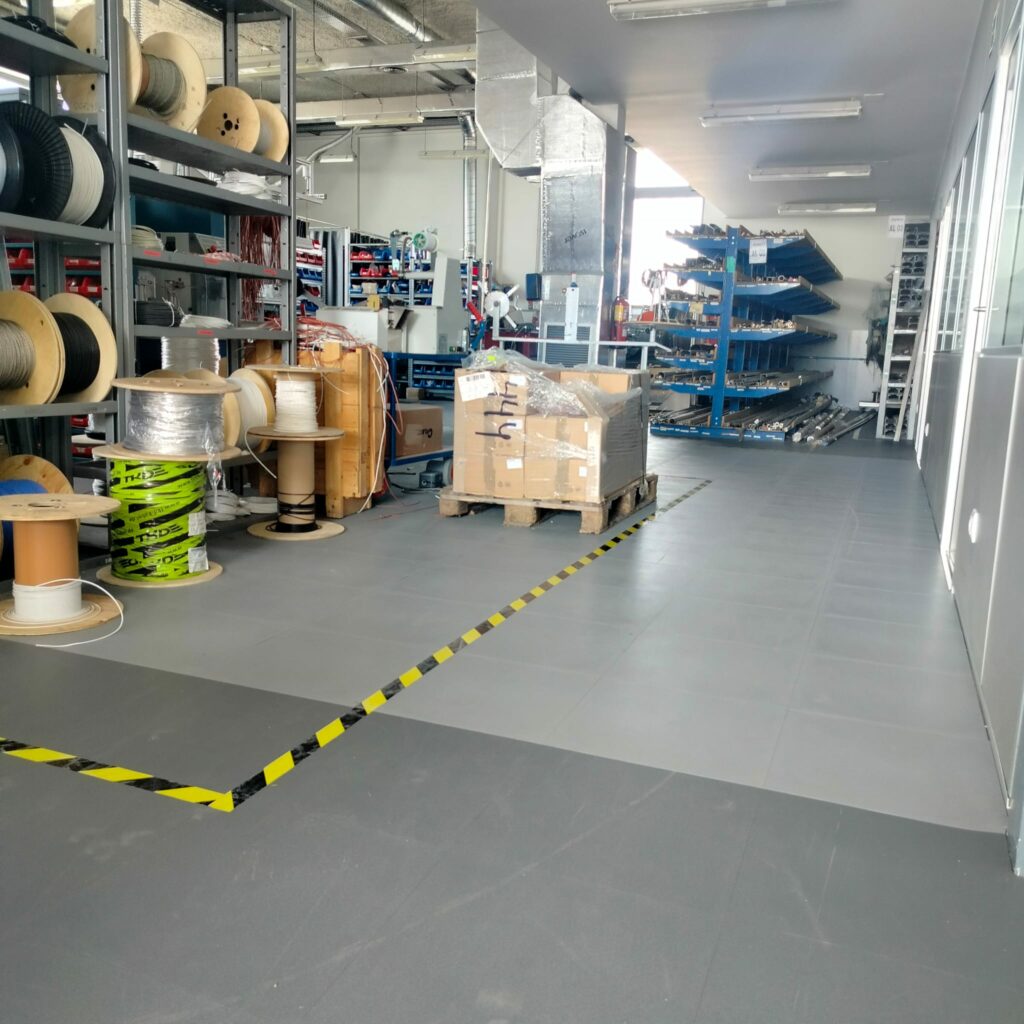 Il rifacimento dei pavimenti negli stabilimenti industriali ha alcune specificità. Si deve tenere conto della superficie originaria, delle dimensioni dello spazio, dei requisiti di resistenza, delle apparecchiature di movimentazione e della pulizia. L’azienda ha scelto le piastrelle Industry, che sono adatte ai magazzini altamente sollecitati e agli ambienti industriali. Queste piastrelle non solo garantiscono il comfort durante la posa, che può essere effettuata senza interrompere le attività, ma soddisfano anche i requisiti igienici della pulizia e della manutenzione.